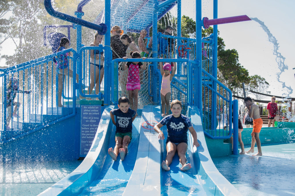 WetSide Water Park is located on Hervey Bay’s foreshore at the junction of Main Street and the Esplanade, Pialba, Hervey Bay.  It is a fun, family friendly water park with waterslides, the FlipSide Board Rider, water play areas, TotSide for under 5s play and a Fountain Light Show on Saturday nights at 7pm.  There is also a coffee shop, fish and chip shop and restaurant on site.