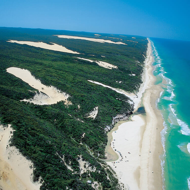 It is an island of exceptional natural beauty and has over 250km of sandy beaches with long uninterrupted sweeps of ocean beach, more than 40km of strikingly coloured sand cliffs, spectacular dune blowouts, tall rainforests, perched dune lakes, banksia woodlands, heath and mangrove areas in a spectacular mosaic landscape.